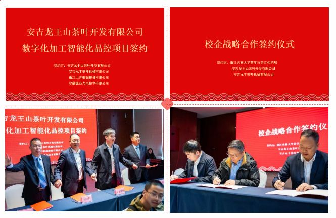 安吉白茶(綠茶)智能化加工與質量品控裝備數字化研討會 2021年11月18日,安吉白茶(綠茶)智能化加工與質量品控關鍵技術與裝備數字化升級研討會在浙江安吉召開。本次研討會由浙江大學湖州市茶葉產業聯盟、湖州茶產業協會主辦, 此次研討會重點從安吉白茶產業的基地管控、采摘、加工、包裝、倉儲、銷售、物流等各個環節進行數字化、智能化研討,圍繞安吉白茶產業生產、加工智能裝備的供給端,探索發展路徑,攻克技術難題,以高科技產品助推安吉白茶產業高品質發展。 研討會上安吉龍王山茶葉開發有限公司與安吉元豐茶葉機械有限公司、浙江上洋機械股份有限公司、安徽捷迅光電技術有限公司簽訂了《安吉龍王山茶葉開發有…