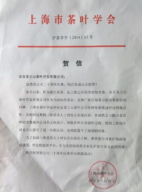 龍王山茶業榮獲“山西消費者信賴綠茶牌”“第九屆浙江綠茶博覽會金獎”雙項大獎,謝謝浙江和山西各級領導的鼓勵,謝謝山西人民厚愛,我們會更加努力做好茶,讓全國人民感受到安吉白茶的魅力。