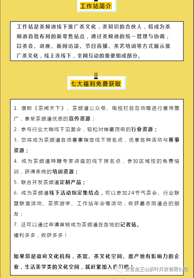 茶頻道工作站是茶頻道從全國各地精選的茶行業協會組織、產茶區縣級電視臺、茶館,是茶頻道授權在各地的分支機構和會員服務中心,工作站是茶頻道大家族不可分割的一部分,除了共享頻道提供的宣傳、賽事、活動、渠道等資源外,頻道會為工作站提供茶山行、芒果茶會等活動支持,將線上的工作站打造成一家線上茶館,大家暢所欲言;將線下的工作站,打造為一個集茶會活動為一體的交流平臺打造“以茶為媒,天下比鄰”的理念!