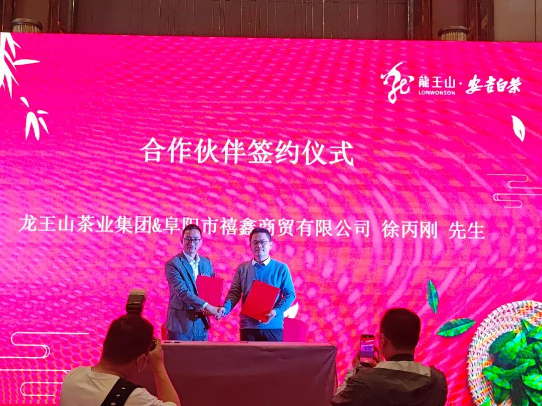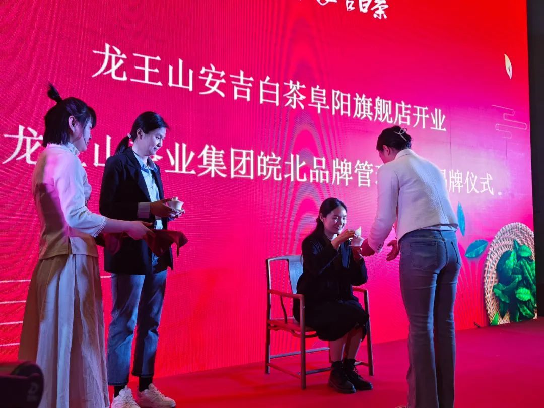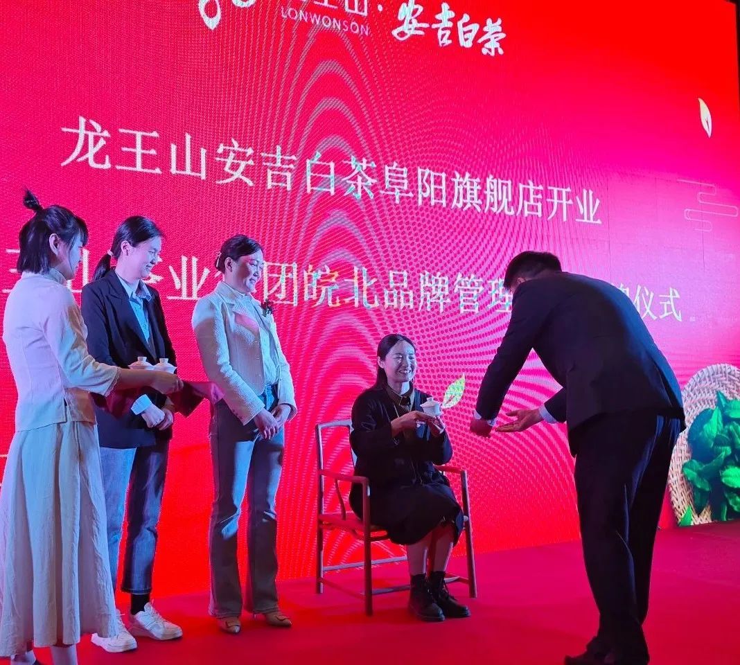 2023年3月9日上午,龍王山安吉白茶阜陽旗艦店開業暨龍王山茶業集團皖北品牌管理中心揭牌儀式在阜陽隆重舉辦。阜陽職業技術學院經濟與管理學院葉樹斌院長以及有關部門領導、經銷商代表、意向合作伙伴、消費者代表等、安吉龍王山茶業集團董事長潘元清、副總經理吳金來、皖北品牌管理中心總監張紅偉、旗艦店總經理張慧慧以及公司各營銷區域經理、有關媒體朋友等150多人共同見證本次活動的美好時刻。